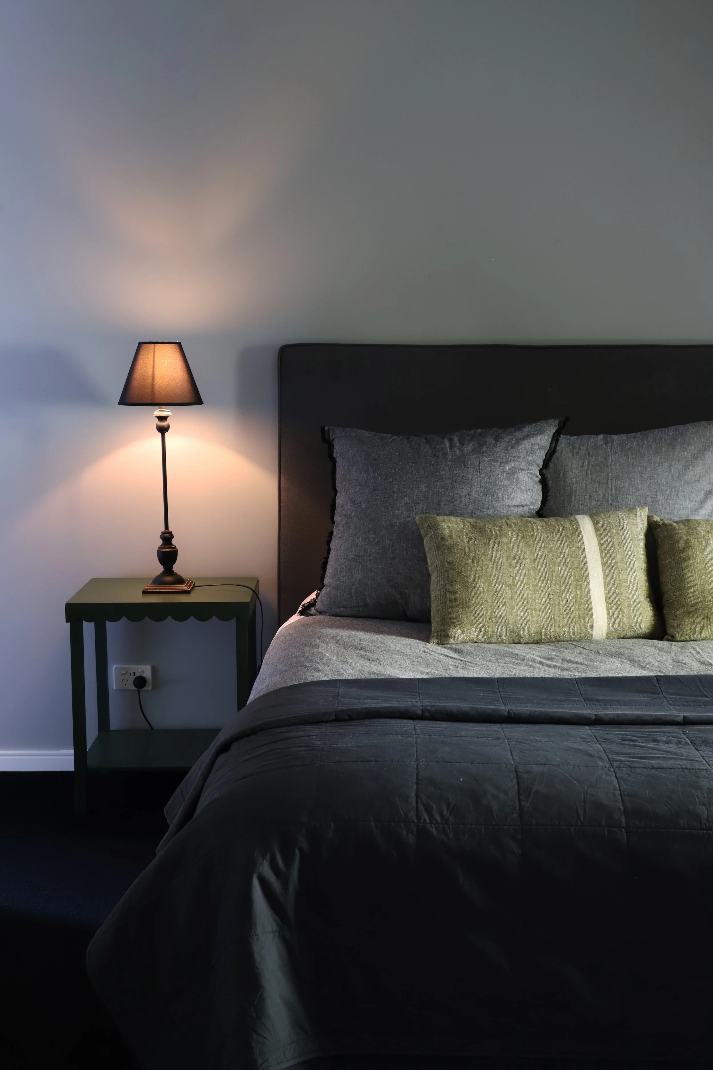 Step through the bedroom double doors to a comfy king size bed and cosy double-sided fireplace.